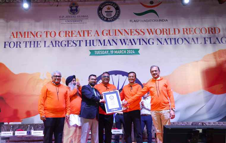 In a remarkable achievement, OP Jindal Global University (JGU), in collaboration with the Flag Foundation of India (FFI), has secured a new Guinness World Record by creating the largest human waving national flag, surpassing all previous records.