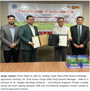 The signing ceremony, which took place on Friday, marked the exchange of agreements between PNB’s General Manager of the Agriculture Division, Kuldeep Singh Rana, and the Director of IoTechWorld Avigation Private Limited, Deepak Bhardwaj.