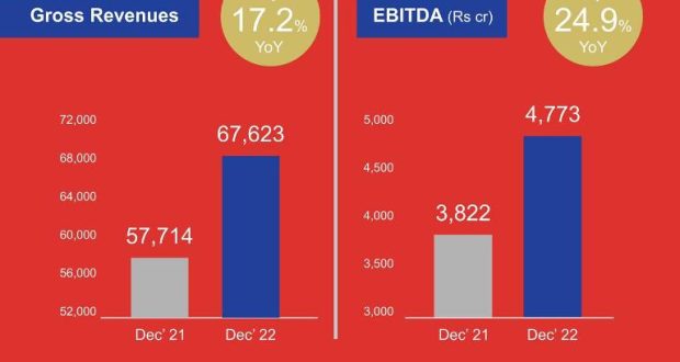 Continuing its growth momentum, Reliance Retail has posted gross revenue of Rs 67,623 crore for the third quarter of the current fiscal (Q3FY23), registering a growth of 17 per cent year-on-year (Y-o-Y) basis. The business posted an EBITDA of Rs 4,773 crore, up 25 per cent Y-o-Y. Net profit for the quarter increased to Rs. 2400 crore.