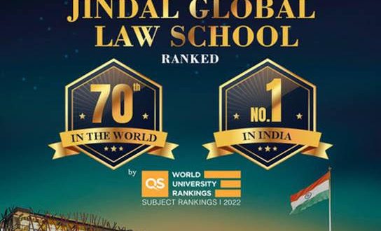 Jindal Global Law School (JGLS) of OP Jindal Global University (JGU) has once again retained the No.1 position in India while its global ranking this year improved to 70th, a jump of six places from 2021, according to the QS World University Rankings by Subject (Law) 2022 released on Wednesday.