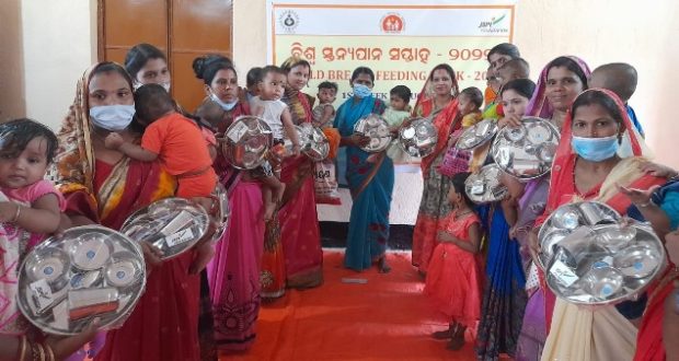 JSPL Foundation in association with the Integrated Child Development Scheme (ICDS), National Health Mission (NHM) and Odisha Livelihood Mission (OLM) of Angul District observed the first day of the World Breastfeeding Week 2022 at Natada Gram Panchayat under Chhendipada Block.