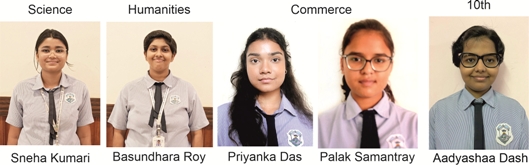 Aadyashaa Dash of Class X scored 98 percent to be the school topper, while in Class XII, Sneha Kumari scored the highest 97 percent marks in Science; in Commerce Palak Samantray and Priyanka Das scored 97.4 percent, and in Humanities Basundhara Roy Scored 97.4 percent to be the school toppers.