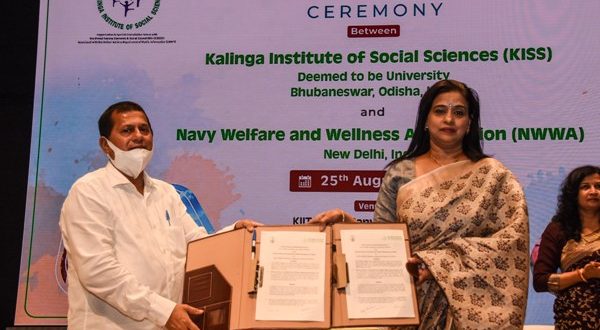 Indian Navy’s Navy Welfare and Wellness Association (NWWA) on Thursday signed an MoU with the Kalinga Institute of Social Sciences (KISS) to promote the wellness and welfare of tribal students. Under the pact, KISS shall also provide educational enhancement courses through KIIT for the naval families from the ongoing academic year.