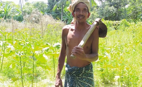 Forty-five-year old Nimai is a small farmer who holds 3.5 acres of agricultural land in which he grows paddy in Kharif season and vegetables like ladies finger, tomato and brinjal in a patch of land in the traditional method.